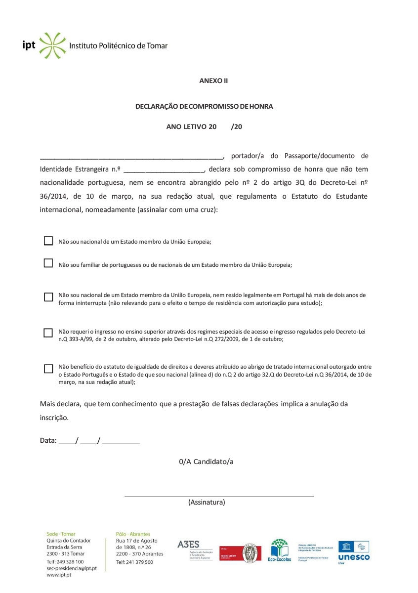 You may apply for a bachelor’s degree programme at Instituto Politécnico de Tomar under the International Student Statute if you do not have Portuguese nationality and if: