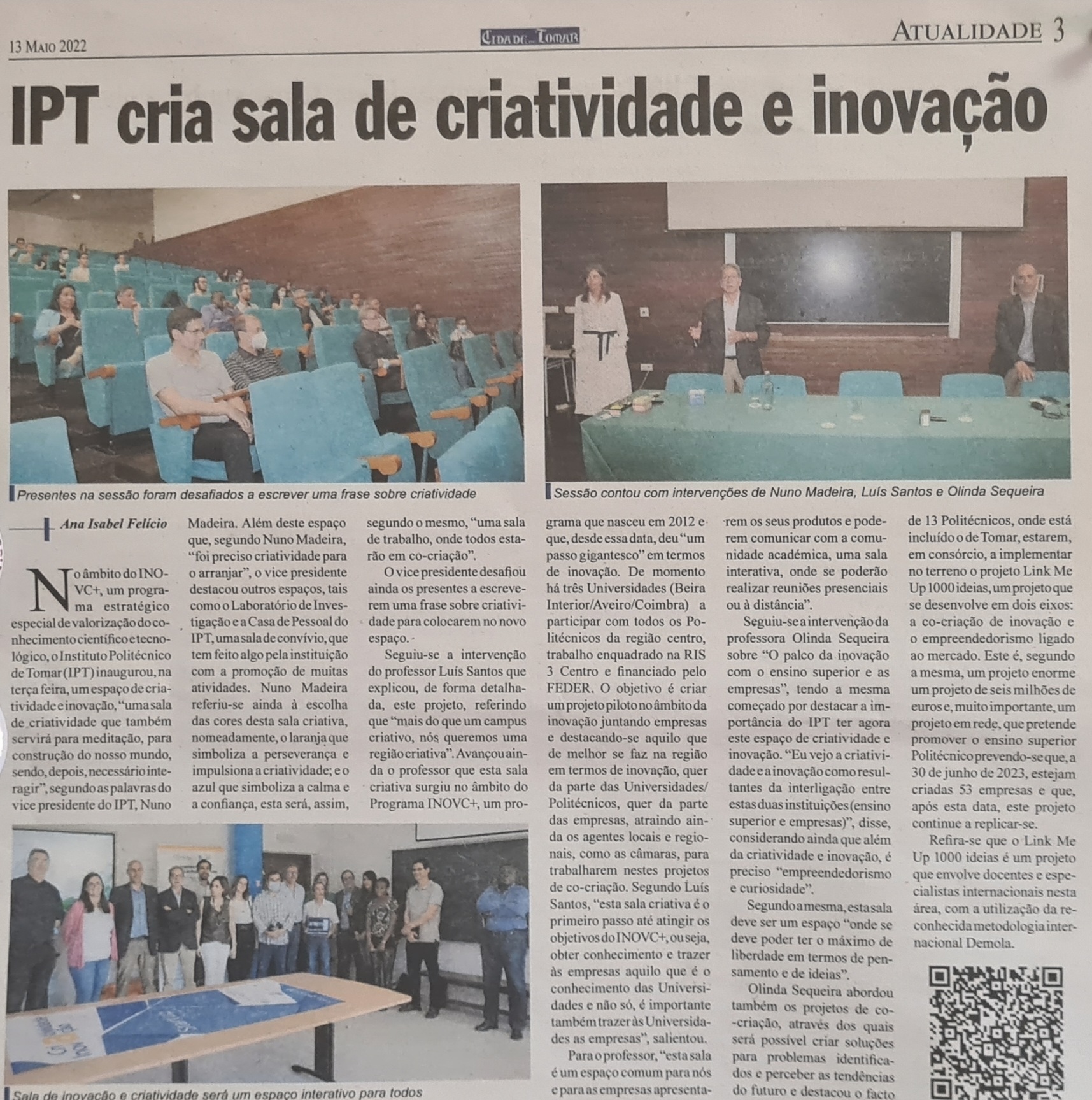Publicação no site Jornal Cidade de Tomar e notícia completa na edição impressa de 14 de outubro.