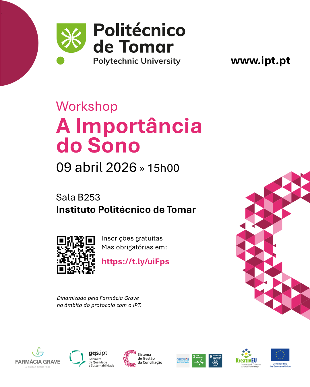 09 de abril - Dinamizado pela Farmácia Grave, o workshop “A Importância do Sono” teve como principal objetivo sensibilizar os participantes para a relevância de uma boa qualidade do sono na promoção da saúde e do bem-estar, onde foram partilhadas pequenas dicas para a melhoria dos hábitos de sono e a promoção de rotinas mais saudáveis no dia a dia.